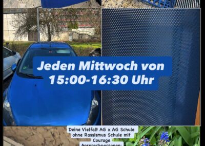 Jeden Mittwoch von 15:00 bis 16:30 Uhr trifft sich die AG Vielfalt unter der Leitung von Frau Baysal-Polat und Herrn Hamann. Gemeinsam entwickeln wir Projekte, die unsere Schule zu einem Ort ohne Rassismus und mit viel Courage machen. Alle Interessierten sind herzlich eingeladen, sich uns anzuschließen!