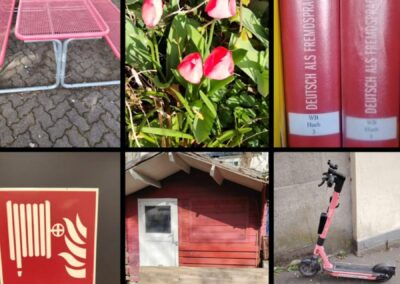 Unser aktuelles Projekt: Jede Teilnehmerin und jeder Teilnehmer hat eine Farbe zugeordnet bekommen. Die Aufgabe ist es, Gegenstände in dieser Farbe zu fotografieren und daraus eine kreative Collage zu gestalten.