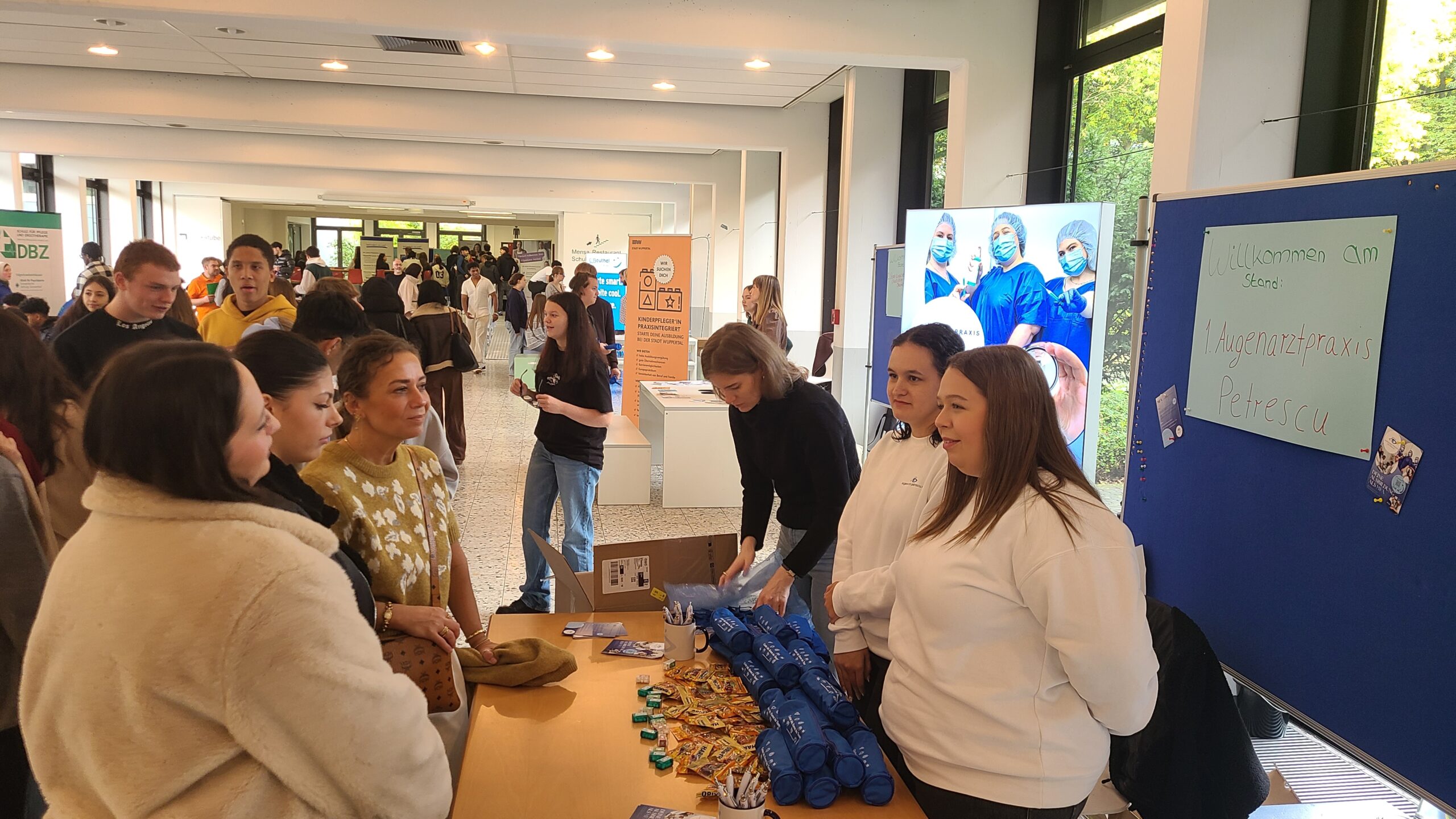 Kurz vor den Herbstferien fand in unserer Schule erstmals eine Ausbildungs- und Praktikumsbörse statt, speziell ausgerichtet auf Betriebe aus dem Bereich Gesundheit und Soziales. Damit passte das Angebot perfekt zum Profil unserer Schule, die genau diesen Schwerpunkt in vielen ihrer Bildungsgänge setzt.